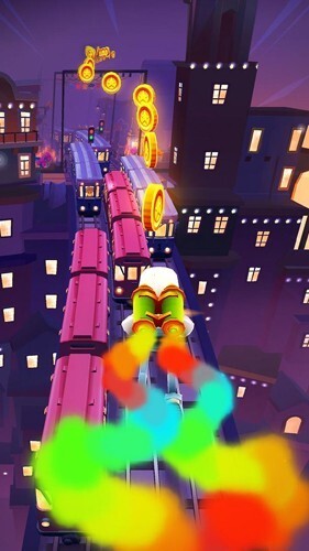 玩家们在地铁跑酷中不仅要收集金币,扑面而来的火车也会让你累够呛,在这个过程中你可以使用道具,加速道具能够让你快速前进,使用滑板可以帮助你多出一条生命,点击屏幕两次可以使用道具。